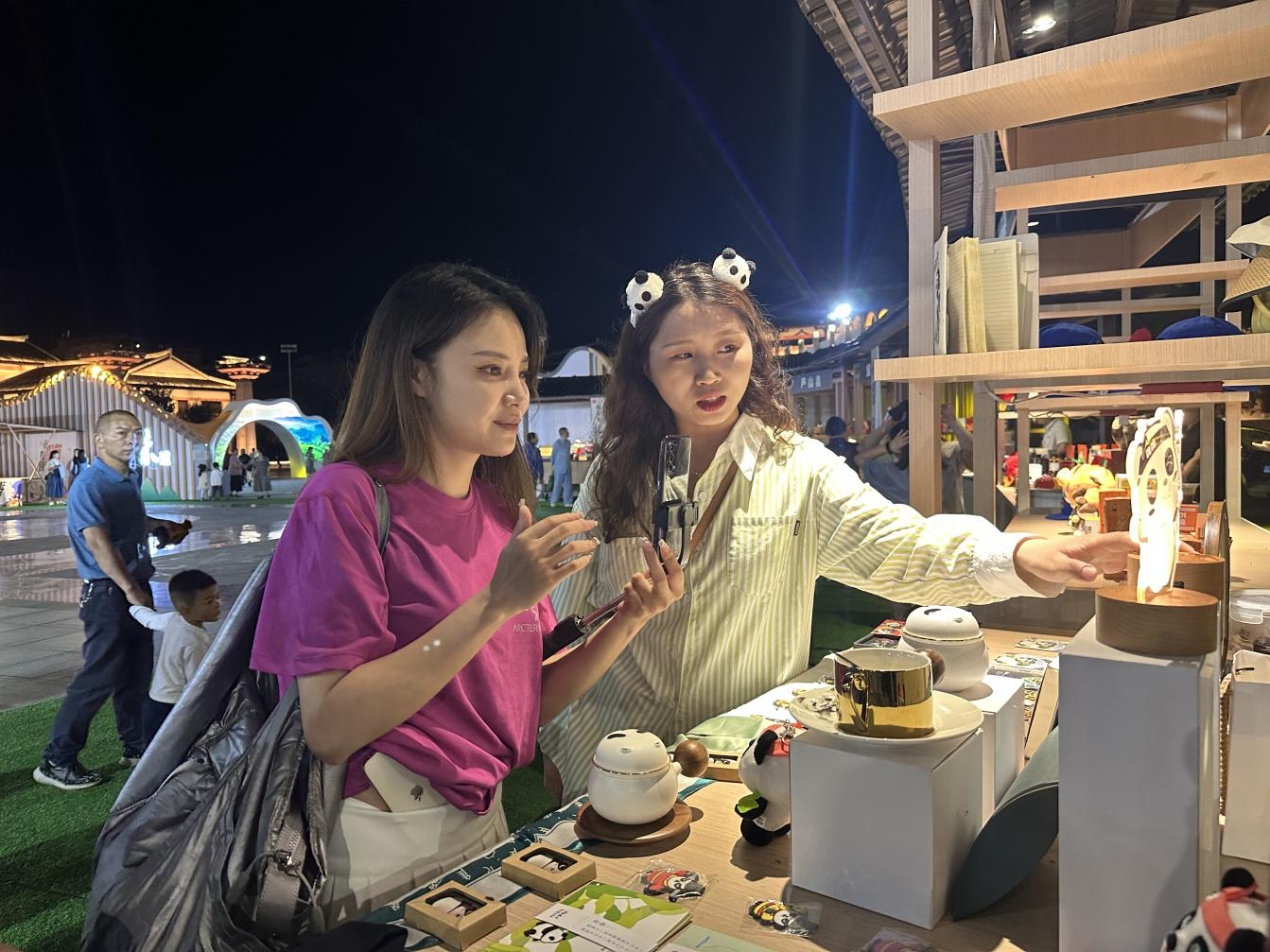 在展會(huì)上,“雅安有禮”的“萌系”文創(chuàng)吸引大批粉絲、游客紛紛駐足參觀、購(gòu)買。其中雅安城市吉祥物“雅雅安安”的衍生產(chǎn)品“安雅柔光小夜燈”“雅雅安安徽章”等具有雅安城市特色的產(chǎn)品廣受好評(píng),以雅安大熊貓為原型設(shè)計(jì)制作的萌趣“熊貓?zhí)淄蕖备鞘艿綗崤?,成為展位上?dāng)之無(wú)愧的“銷冠”。